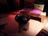 Dit is de hang, een instrument met een prachtige, oosters aandoende klank, afkomstig uit Zwitserland. Ik was meteen onder de indruk van het timbre van dit bijzondere instrument, dat ik voor het eerst hoorde door hangspeler Peter Elbertse. Hij organiseert in zijn Theater aan de Slag in Culemborg zogenaamde ‘Hangavonden’, waarbij het gaat om improvisatie in een lounge-omgeving. Het publiek zit niet op stoelen, maar ligt of hangt op loungebanken, kleden en kussens. Peter vroeg mij mee te spelen op een Hangavond. Wat een ervaring! De combinatie van de hang met diverse klankschalen, de klanken van de harp en de rustgevende sfeer zijn dé ingrediënten om je mee te laten voeren. Maak kennis met dit instrument!