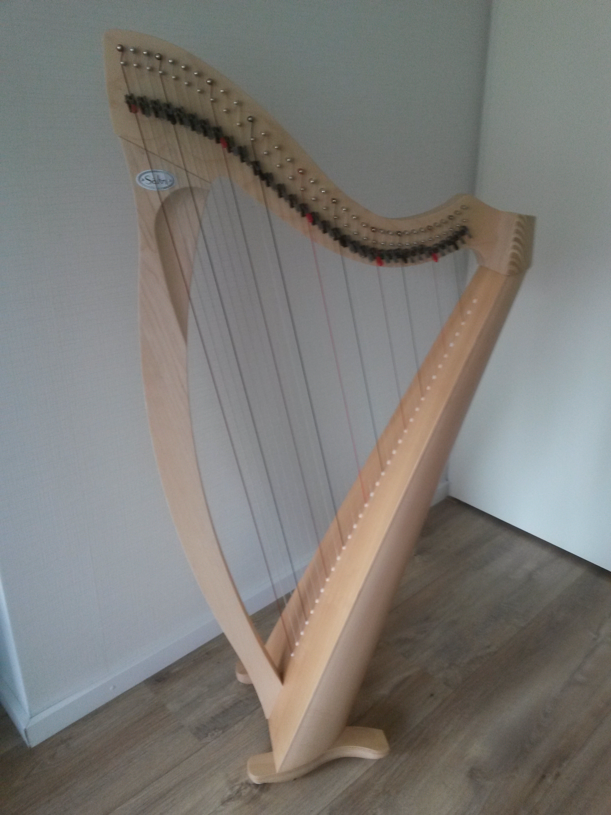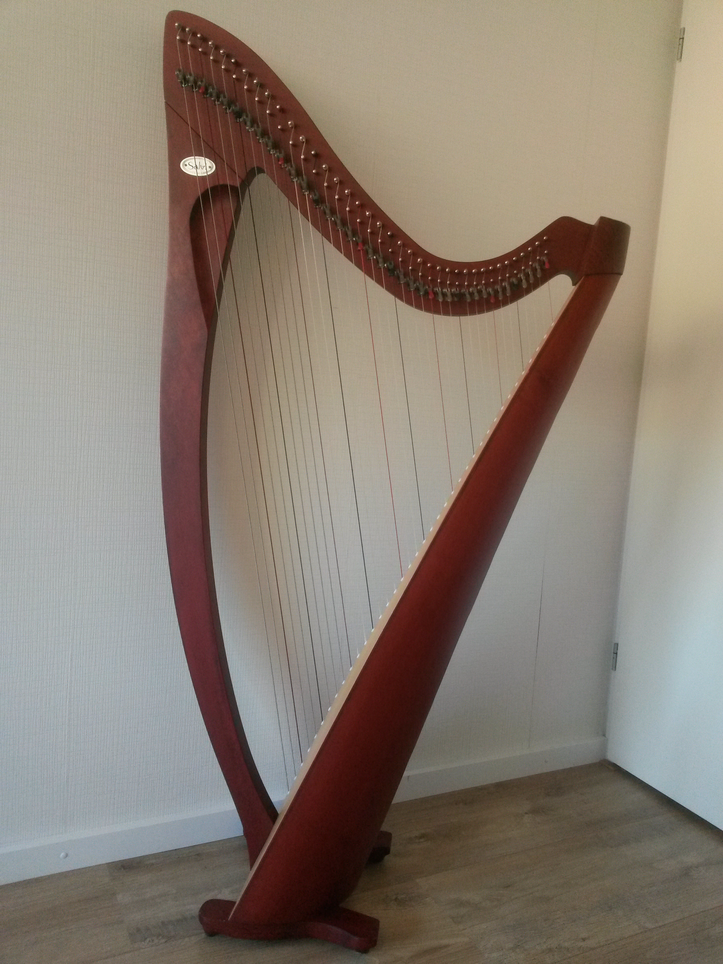 Salvi Prima mahonie 38 snaren (darm) – € 42/mnd – De darmsnaren geven de mooie warme klank waar Salvi bekend om staat. Een heel fijn instrument, niet alleen voor beginners maar zeker ook voor gevorderde harpspelers.