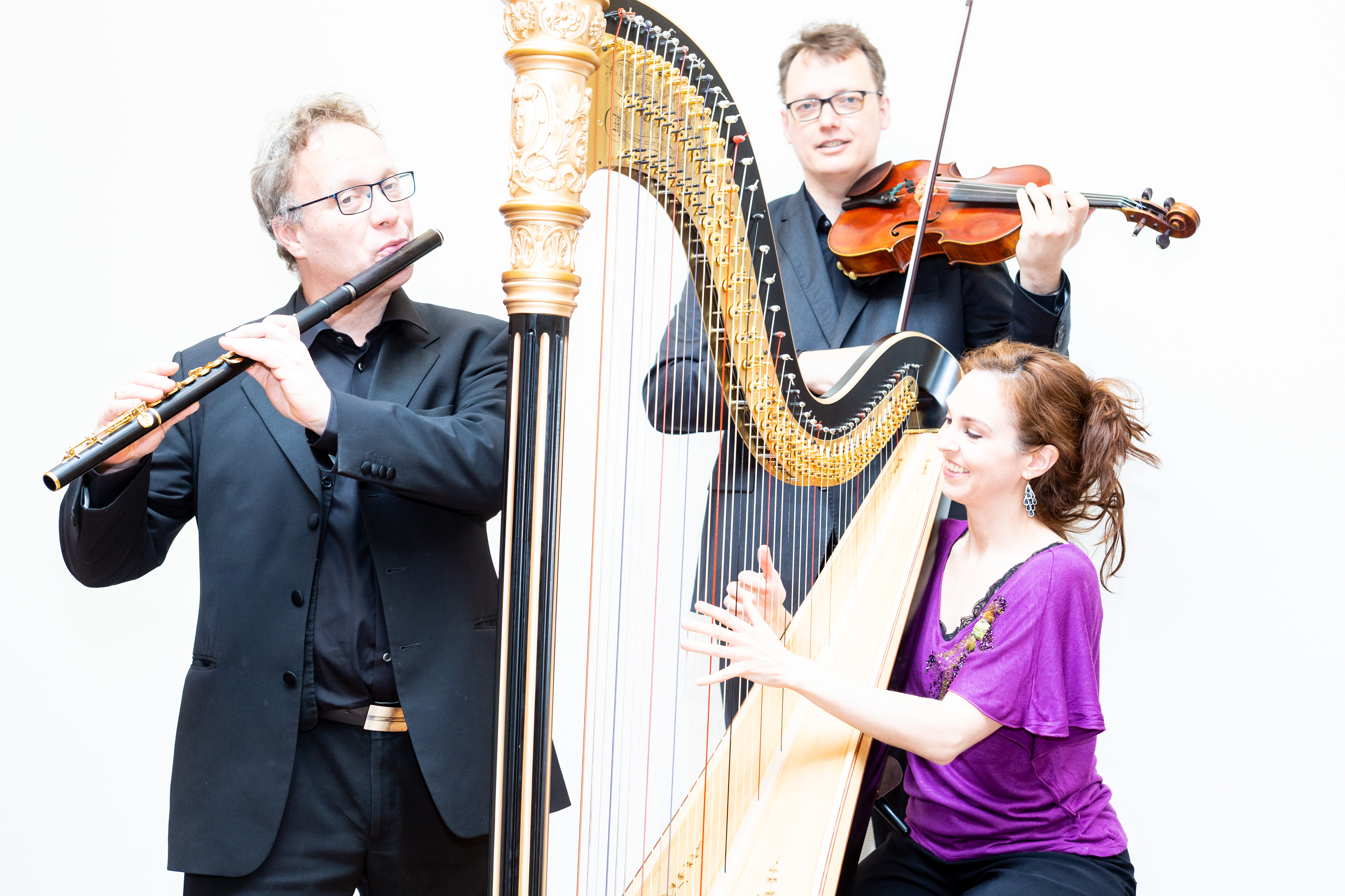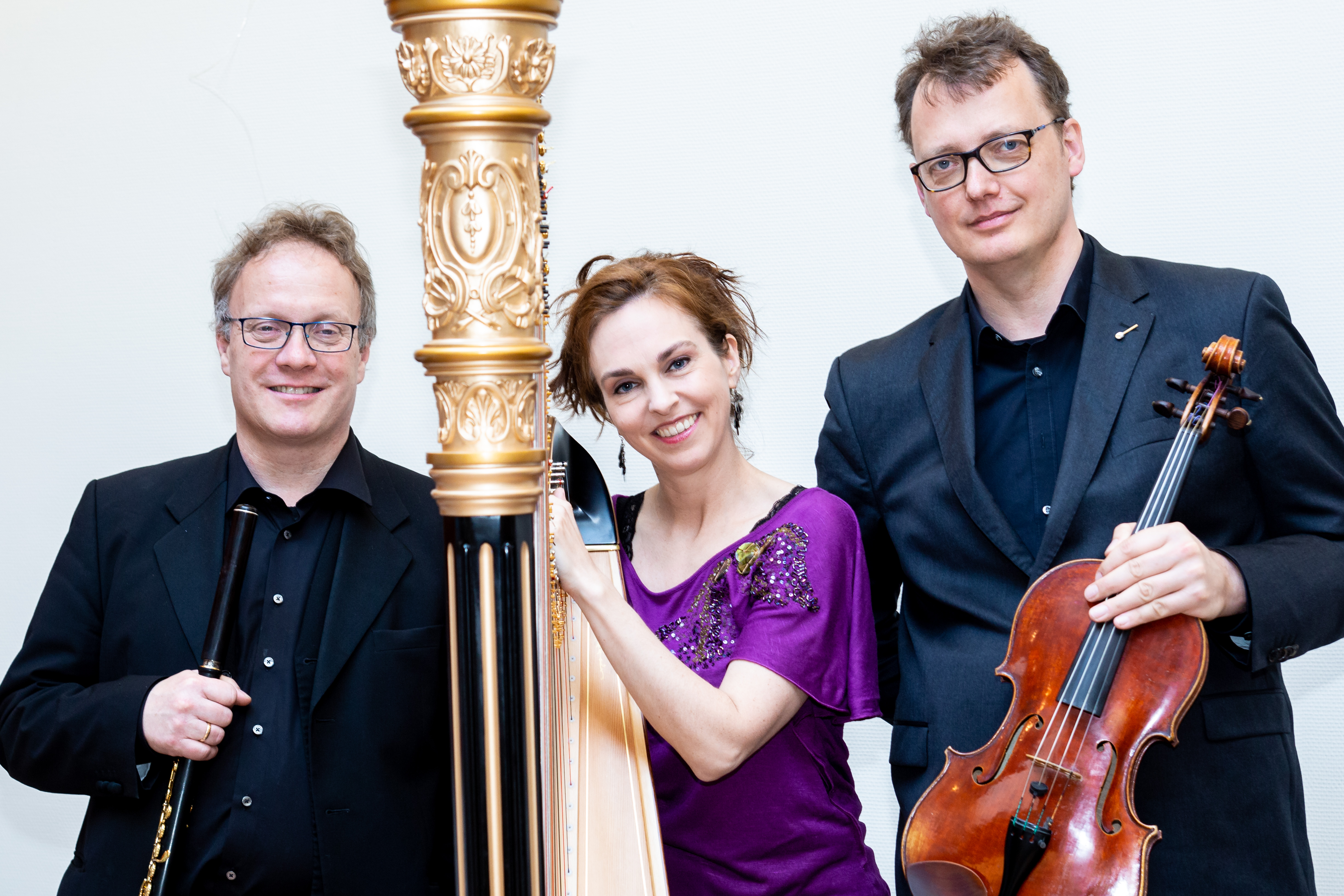 Sinds Claude Debussy in 1915 zijn kleurrijke, zachte en bij vlagen melancholieke Trio voor fluit, harp en altviool schreef, is deze combinatie van instrumenten een bekende ensemblebezetting.